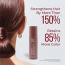 Powered by a hibiscus vibrancy complex, the formula uses natural pigments to shield hair colour from visible fading caused by environmental stressors. Simultaneously, ceramides work to replenish moisture and help maintain hair structure, nurturing the strands with care. Meadowfoam supercharges the treatment’s nourishment, lending detangling and flyaway-reducing benefits for a touchably smooth, shiny hair result.